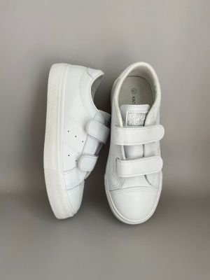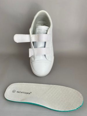 Кроссовки Капитошка белые на двух липучках с кожаной анатомической стелькой